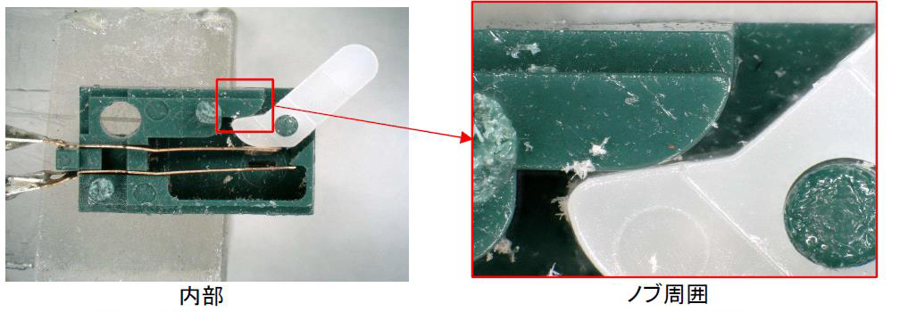 過去の市場不具合において、塵埃・摩耗粉・紙粉等の異物侵入による導通不具合が確認されています。