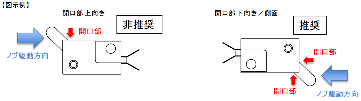 塵埃環境下では、開口部が下向きまたは側面向きとなる配置を推奨します。