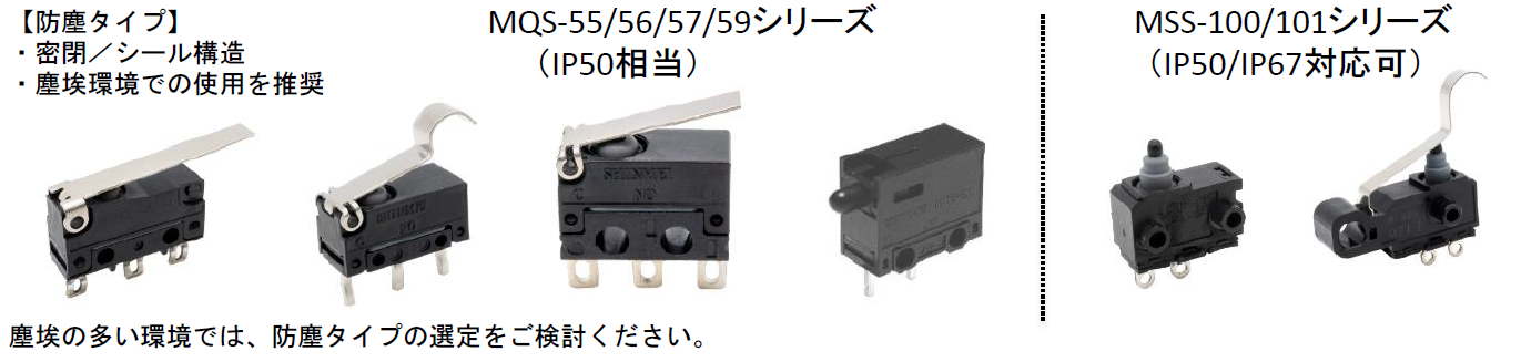 一般スイッチは密閉構造ではないため、使用環境や取り付け条件により異物が侵入する可能性があります。
