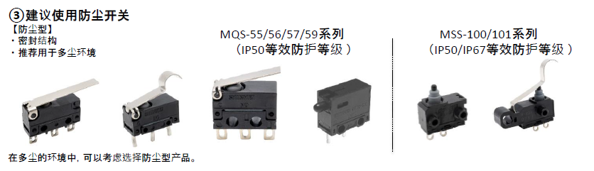 由于一般开关并非密封结构,依据使用环境及安装条件,存在异物侵入的可能性。